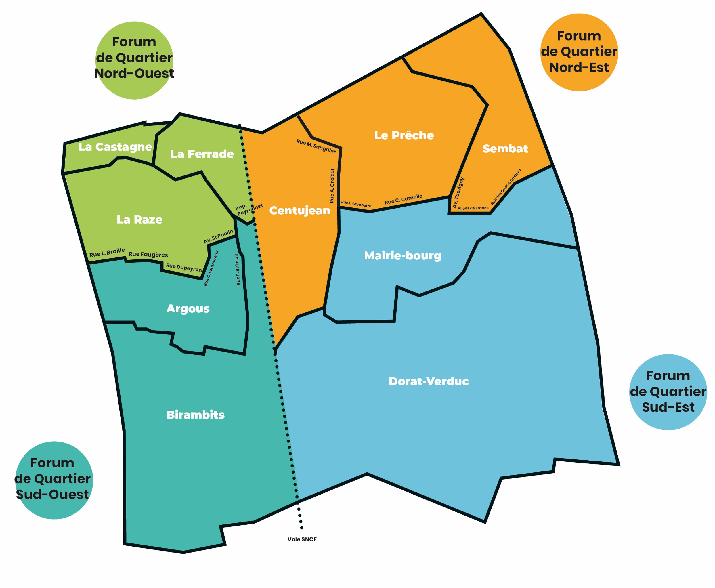Le Forum des quartiers Sud-Est regroupe les quartiers Mairie-Bourg et Dorat-Verduc